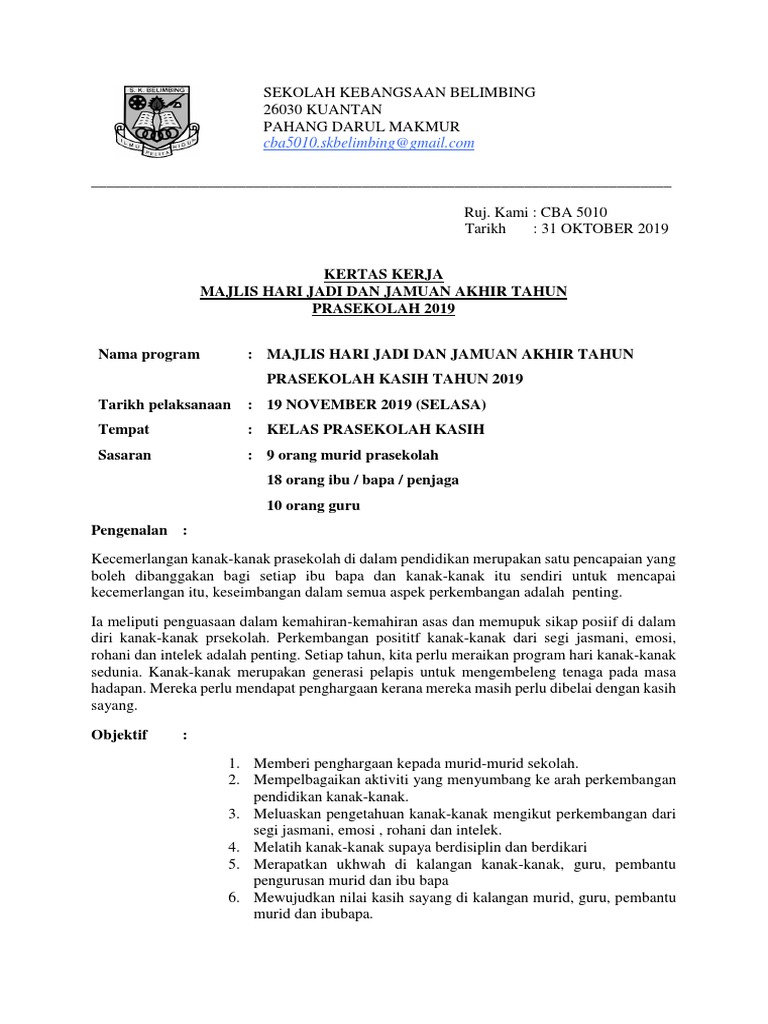 Kertas Kerja Jamuan Akhir Tahun Dan Sambutan Hari Jadi Pdf